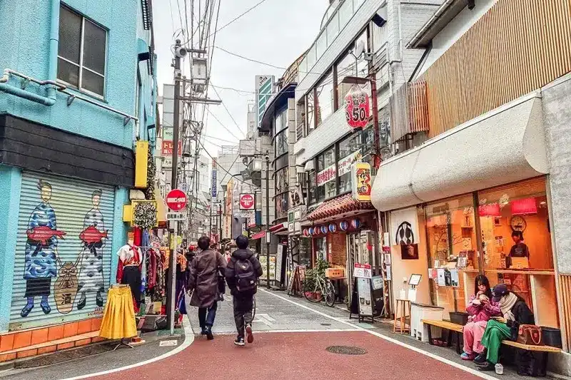 West of Shibuya lies Shimokitazawa, a compact district known for its theatre scene, live music venues, and second‑hand clothing shops. Its streets are too narrow for cars, so you can wander freely among vintage boutiques, record stores, and cosy cafés. Many of the shops are independent and have their own character. Street art brightens walls, and there is always some small performance or flea market taking place. For visitors who like a relaxed, youthful environment away from crowded shopping areas, Shimokitazawa is ideal.