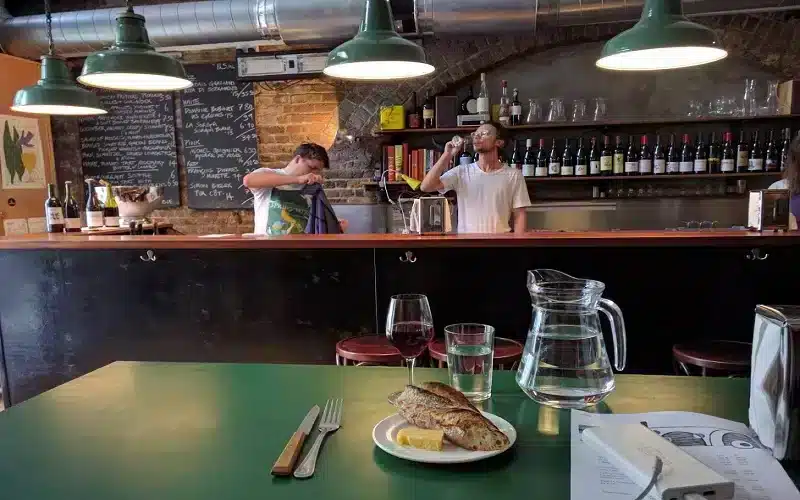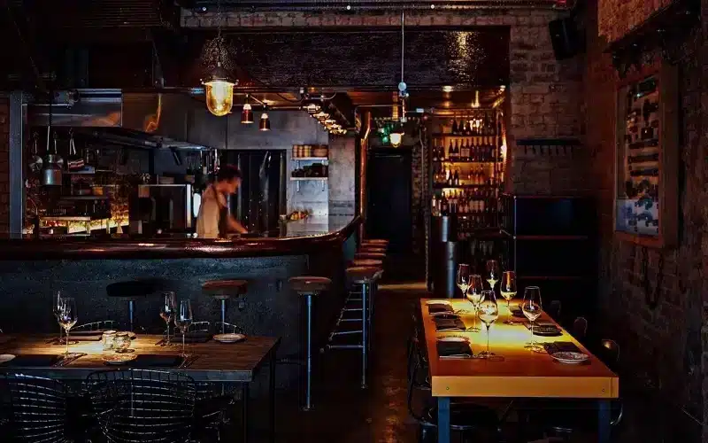 It’s all about the natural wines and the serious talent in the kitchen at 40 Maltby Street, where trains rumble overhead and the decor’s strictly DIY (a tiny kitchen, home-made tables, and wine festival posters on the walls). You’ll find a scribbled blackboard by the bar, listing the menu—it changes daily. The wines are all sourced from small-scale producers, and there are half-a-dozen options by the glass and eight pages of bottles. Come here for a wine-fueled weekend lunch, with the Maltby market in full swing outside.